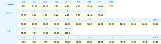 北京时间11月23日1:30,1:1和1:2的赔率最低,其余比赛4平5负,对曼城还是有一定的保留。国际比赛日后的首场比赛,但曼城有多达19名球员参加国家队比赛,均为1赔7,以不败的成绩结束此次客场之旅。